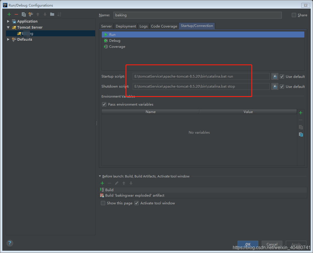 - 首先要确认你的项目用哪个tomcat,如下图,我的tomcat在E盘下