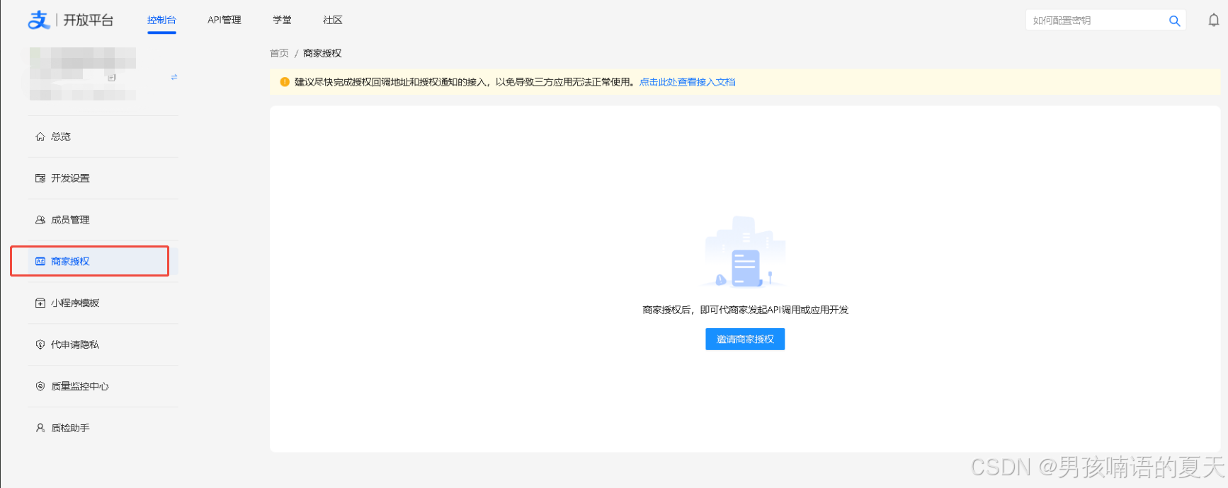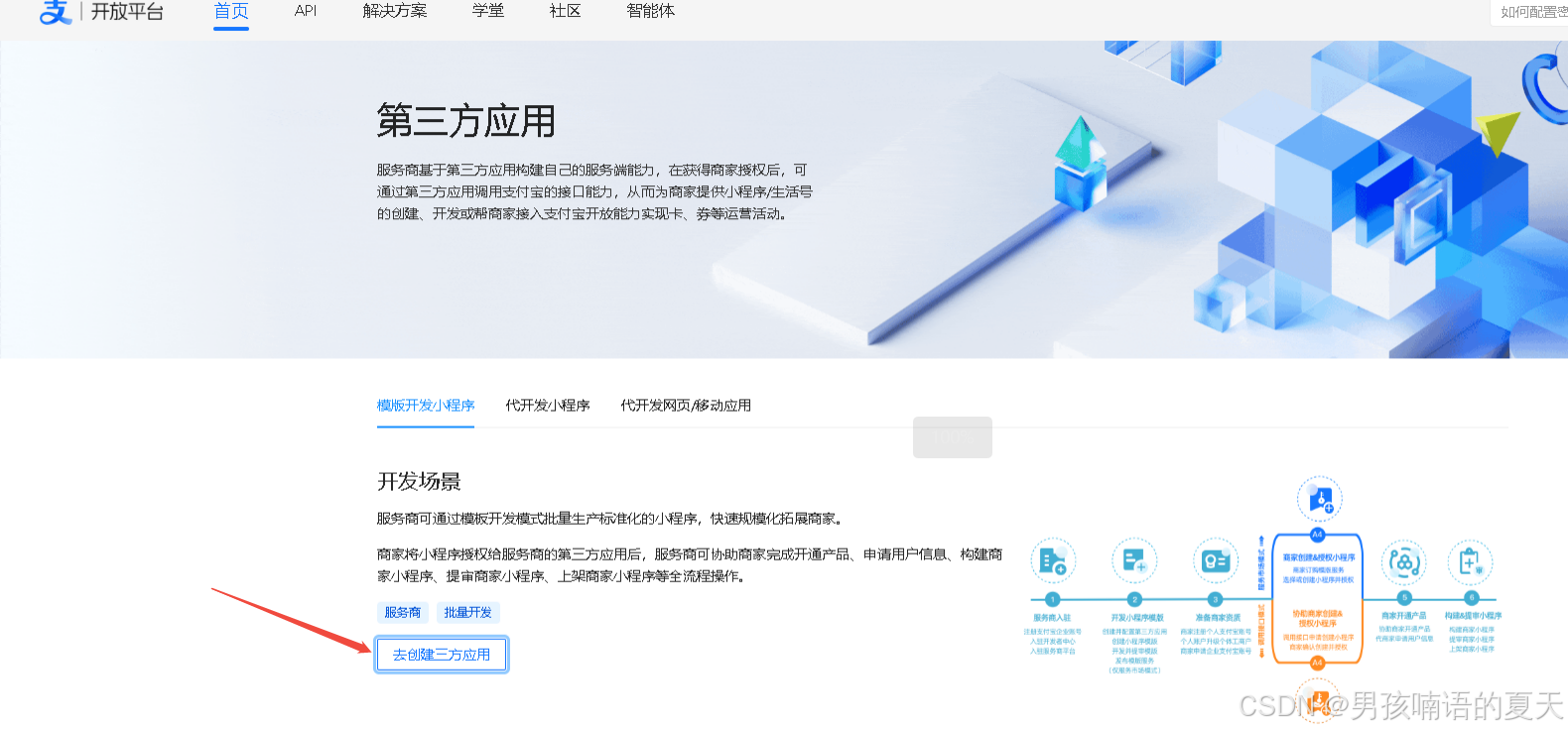 首先,我作为开发者,已经在商户A中,上线了一个小程序,然后就是注册使用小程序的商户,假设称为商户B 商户注册