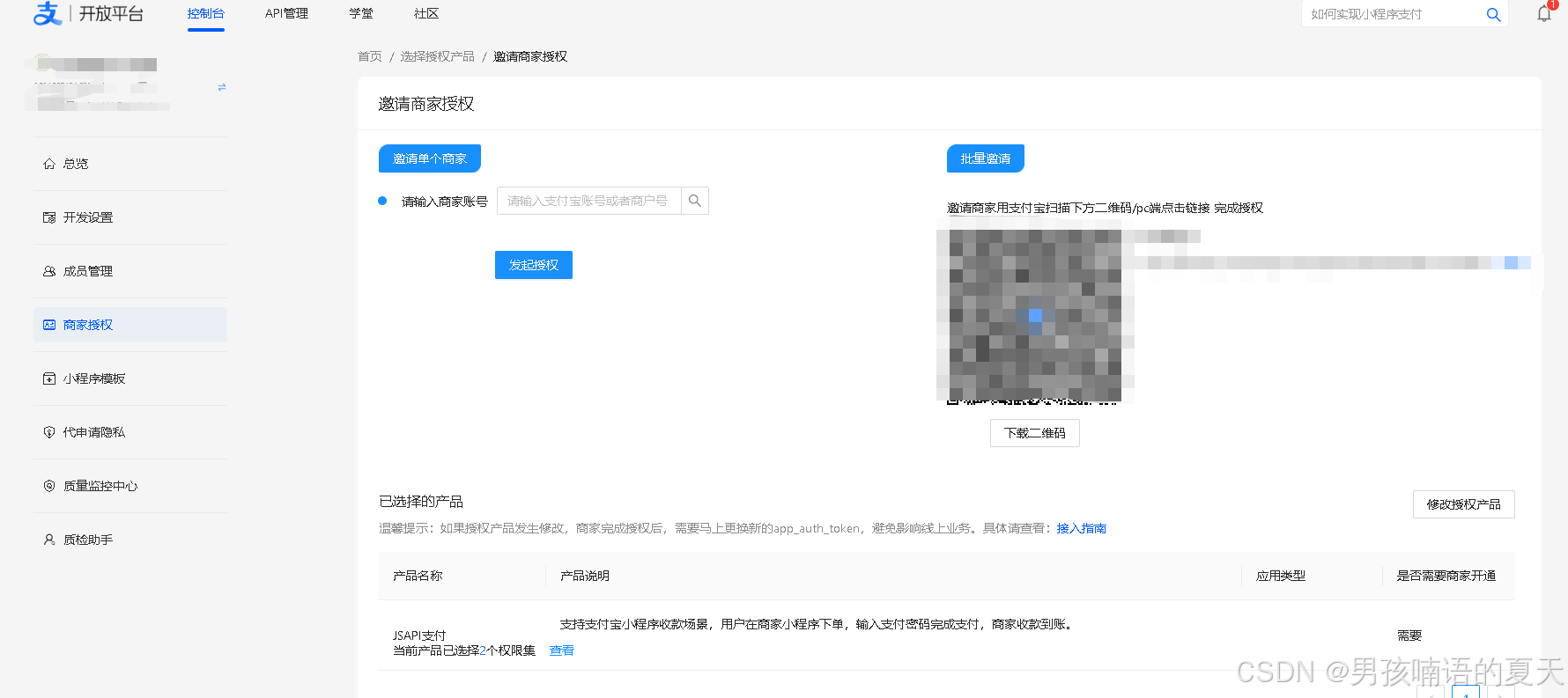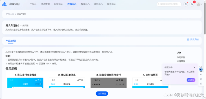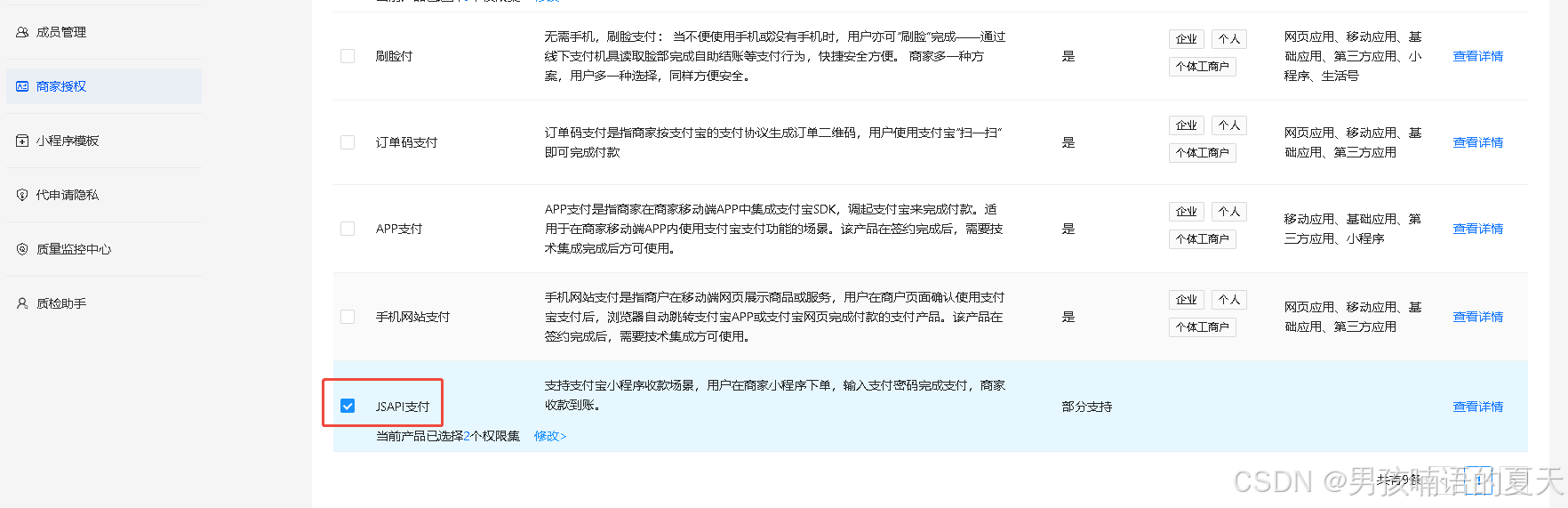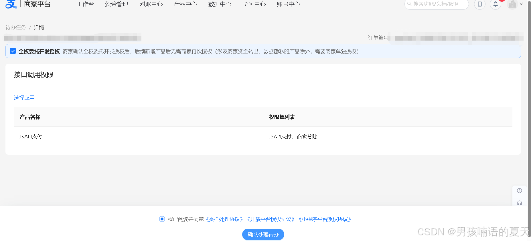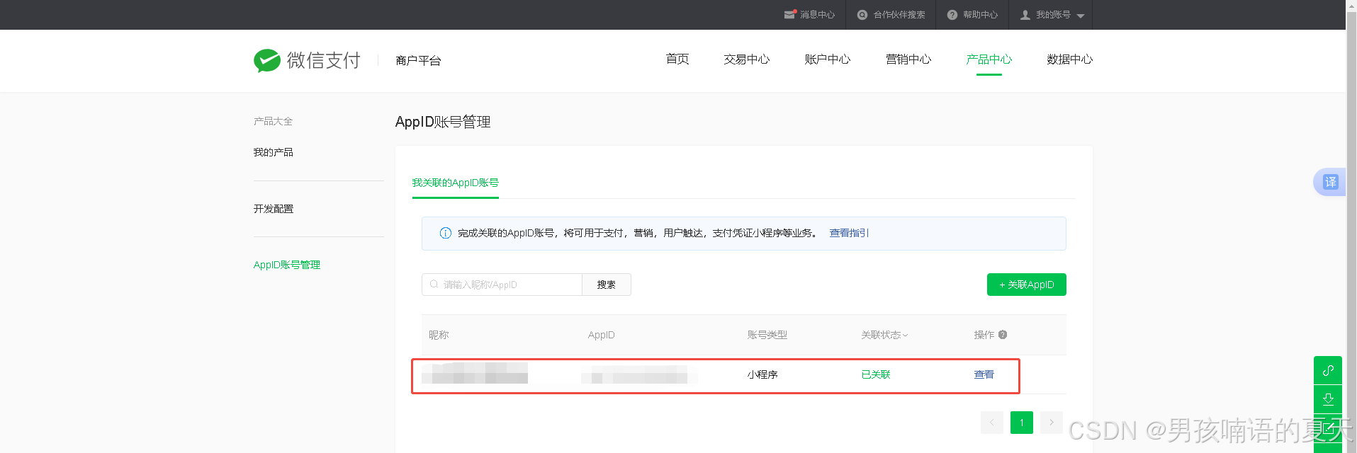 1、申请商户B完成后,开通商户B的JSAPI,然后关联上小程序