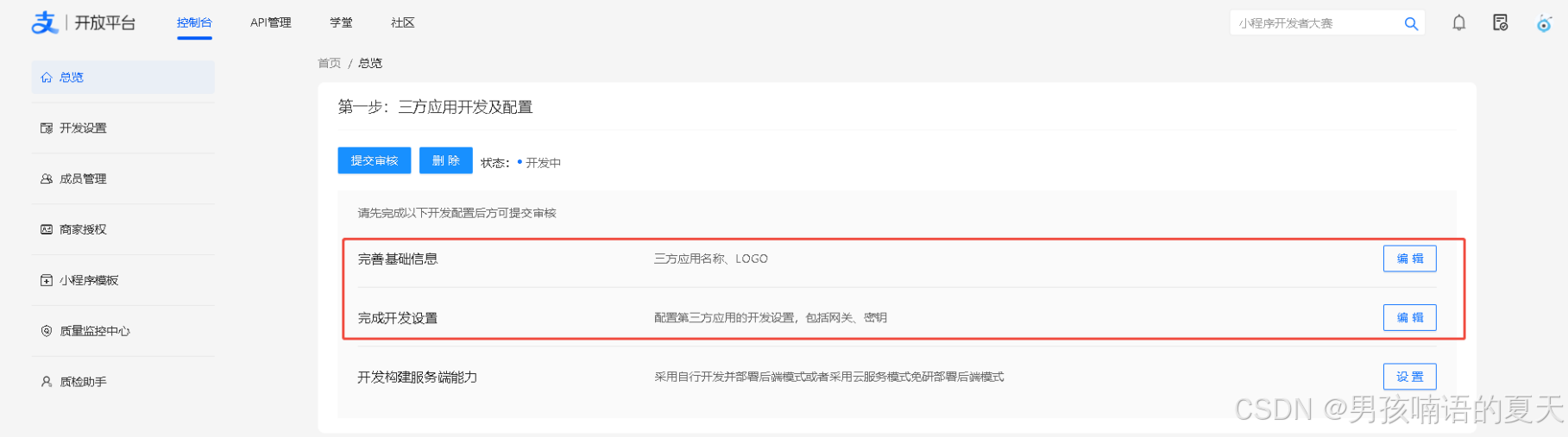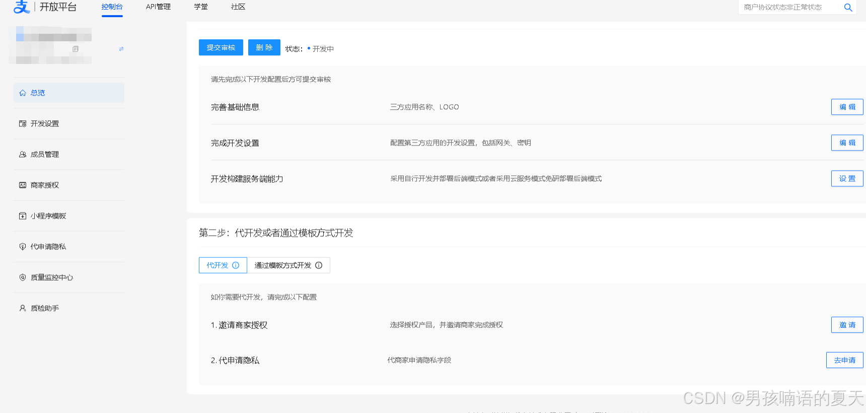 支付宝如果设置成调用第三方支付,记住,是 无法通过进入小程序后台进行 提审的,要么解绑后提审,然后重新绑定,但是里面的token也会改变,要换成最新的;或者调用接口来提审