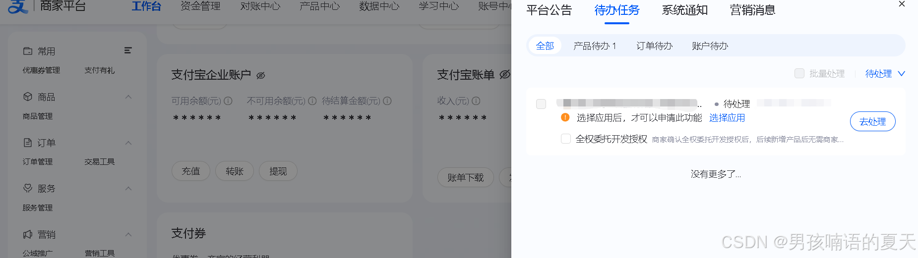 5、登录商户B,在消息--待办任务进行确认通过授权