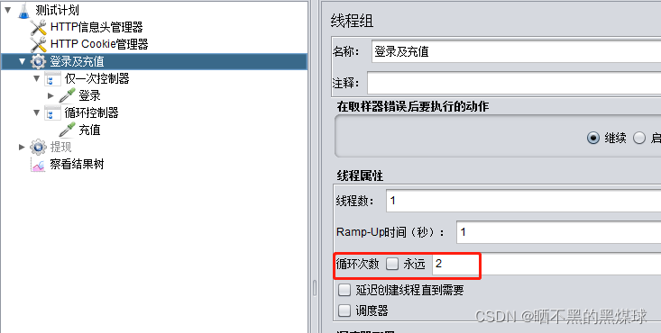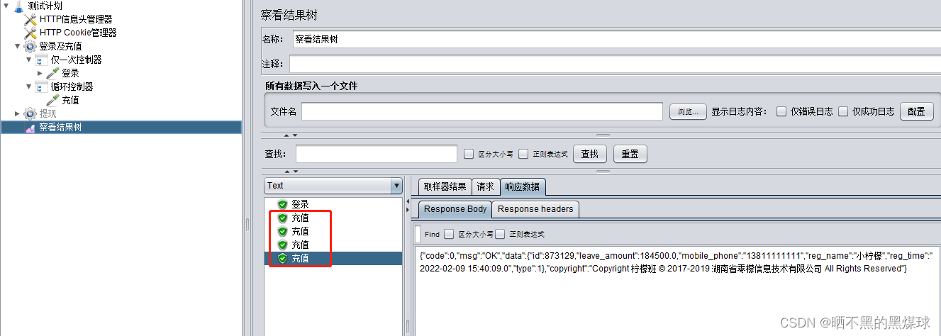 循环次数设置为2,运行结果可以看到登录与充值都运行了两次