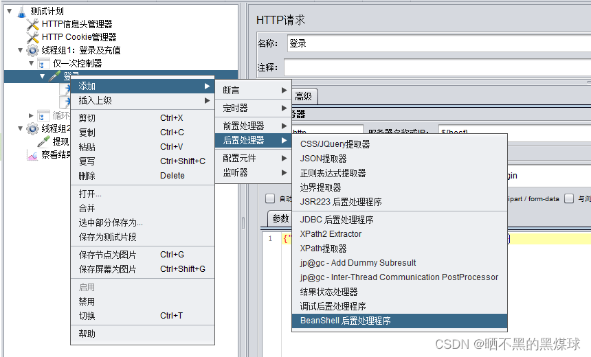 右击【HTTP请求】-【添加】-【后置处理】-【BeanShell后置处理程序】