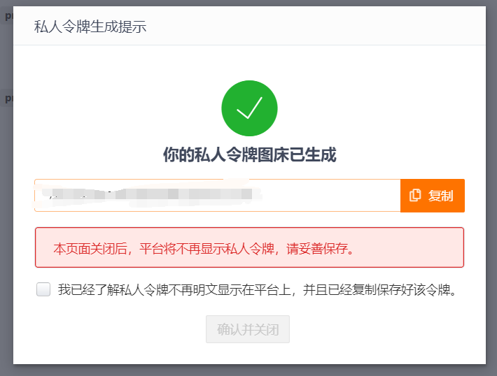 - 最后生成令牌,需要进行账户安全验证,保存你的私人令牌token(一长串字符)。