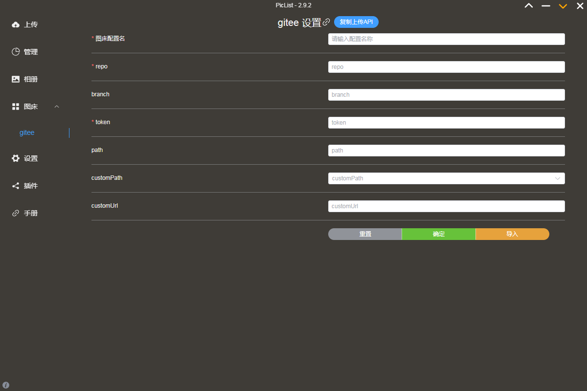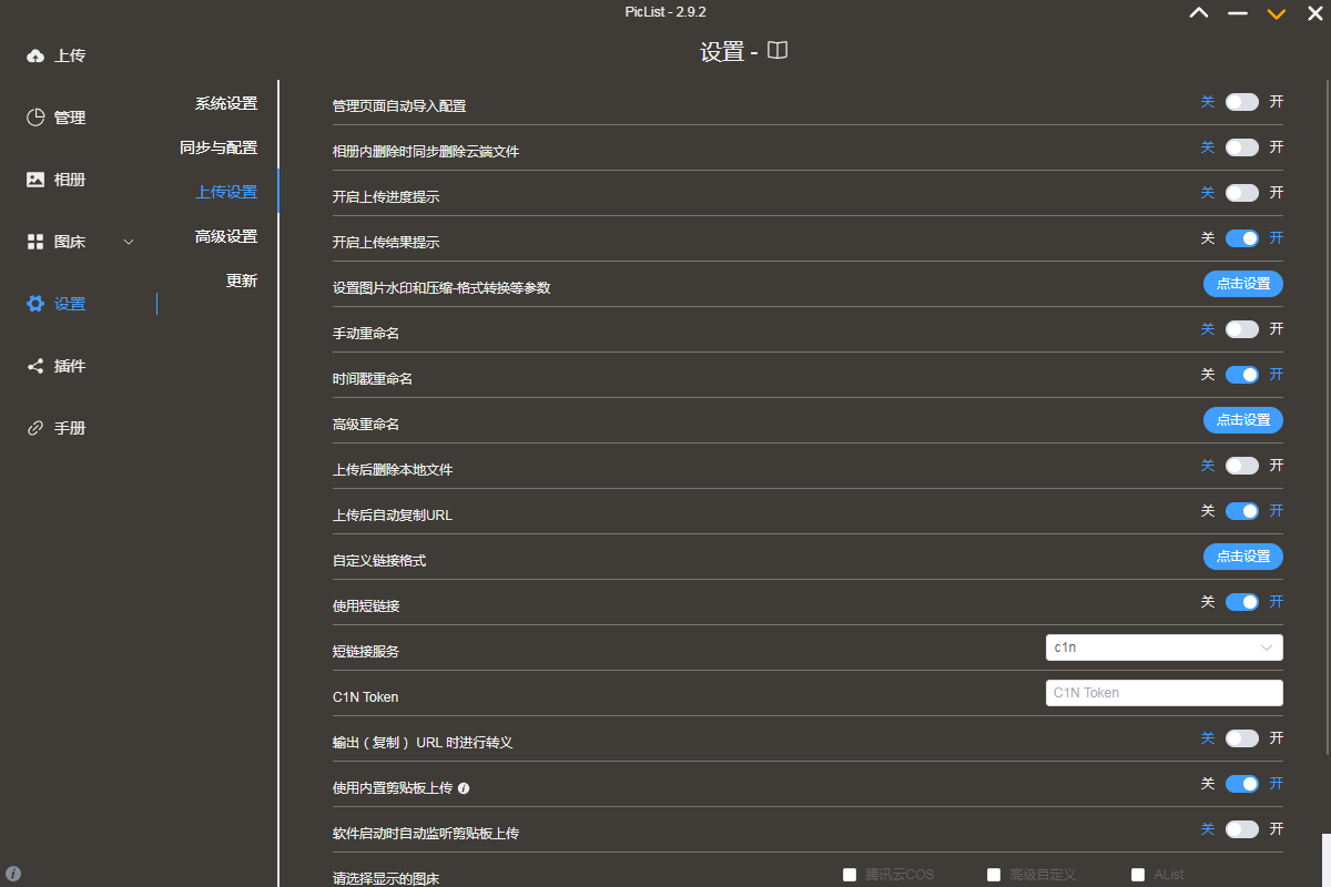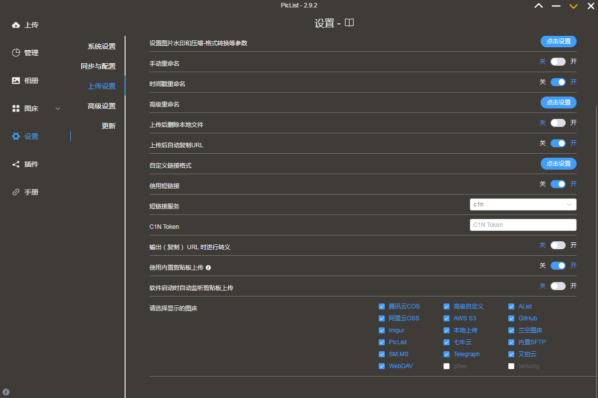 在上传设置中建议打开时间戳重命名,其他的随意。