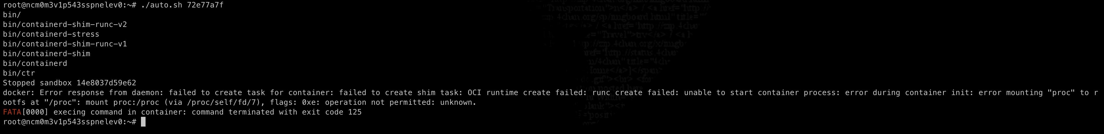 从报错信息flags: 0xe: operation not permitted可以知道这个问题的直接原因是挂载 proc文件系统的时候没有权限,导致这一现象的根本原因还需要进一步定位。