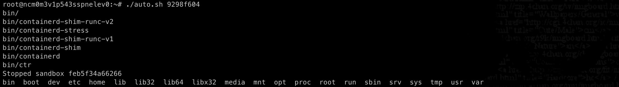 runc 会先挂载 /proc/cpuinfo 和 /proc/meminfo,这两个目录实际对应节点上 /run/containerd 下的子目录,比较巧的是,用户刚好挂载了 /run/containerd 目录到容器。