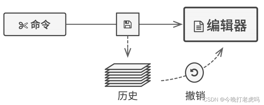 当用户触发撤销操作时,历史类将从栈中取回最近的备忘录,并将其传递给编辑器以请求进行回滚。由于编辑器拥有对备忘录的完全访问权限,因此它可以使用从备忘录中获取的数值来替换自身的状态。
