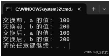 上面的实例表明了,虽然在函数内改变了 a 和 b 的值,但是实际上 a 和 b 的值没有发生变化。