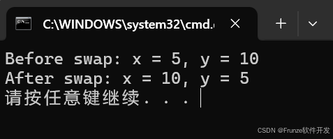 printf("Before swap: x = %d, y = %d\n", x, y);