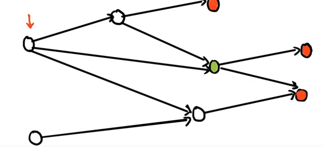 对于绿色点中的最上面的那个点,它虽然也会到达一个绿色点,但是它不走那个绿色点不就行了!它明明可以到达那个红色点的,所以它也是 N 态。