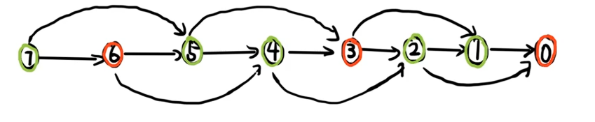 考虑从 DAG 的视角来看这个问题。设 \(n=7,k=2\),显然可以建出如下的图: