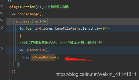 toViewBottom()方法要在信息加载完之后的方法里调用,下图就是在图片上传成功之后执行