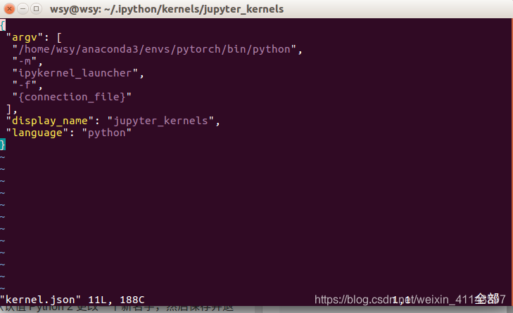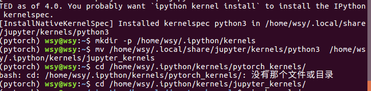 6、运行cd /home/wsy/.ipython/kernels/jupyter_kernel/为你的kernel改一个新名字