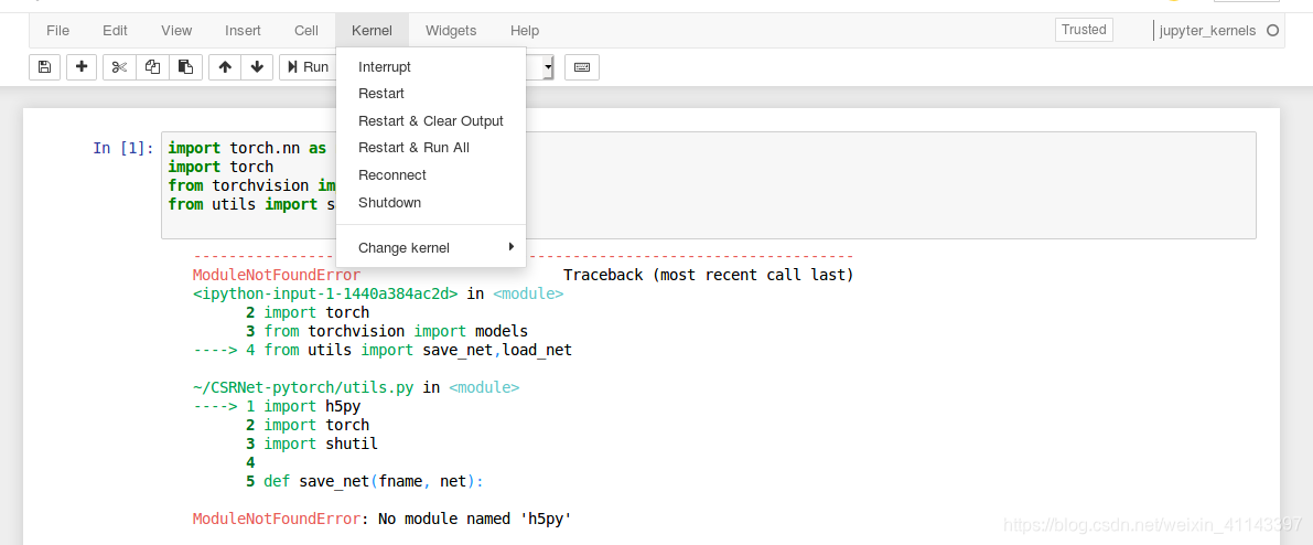 重新打开一个python文件,在新的jupyter notebook中,kenrel下即可出现pytorch