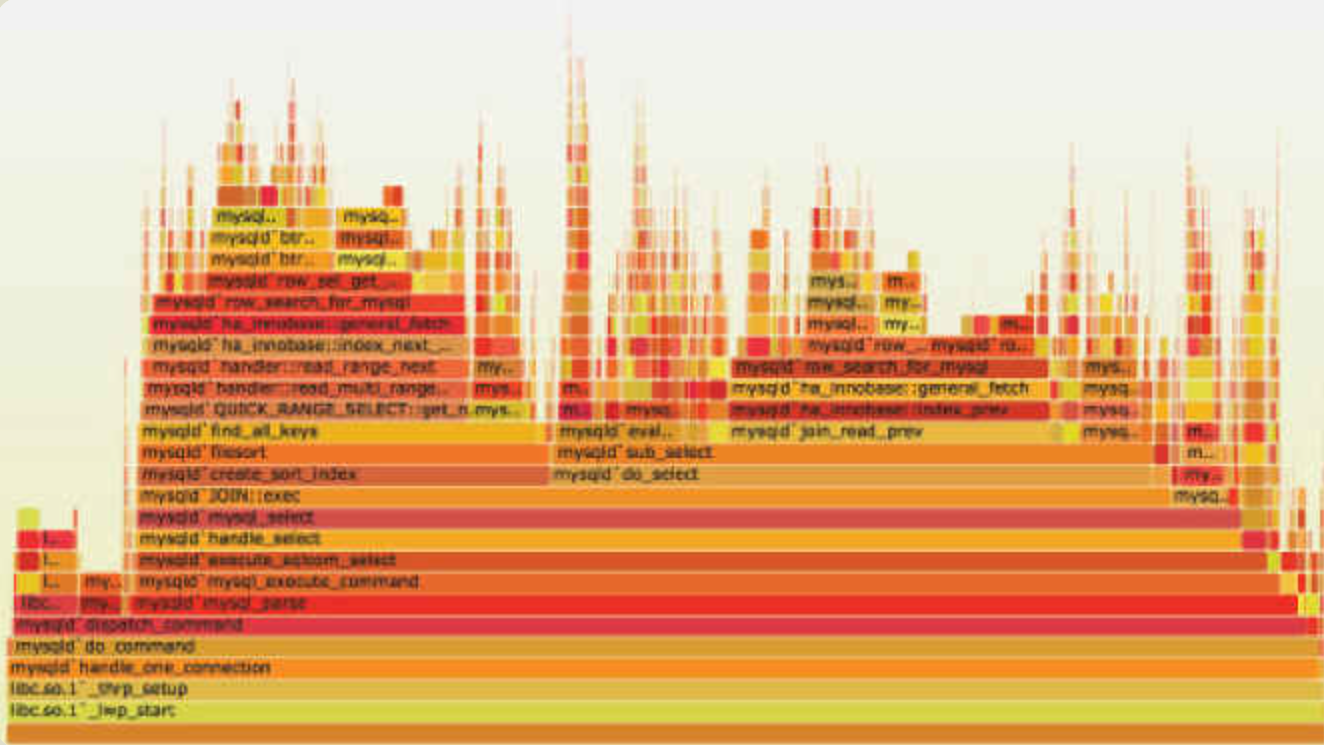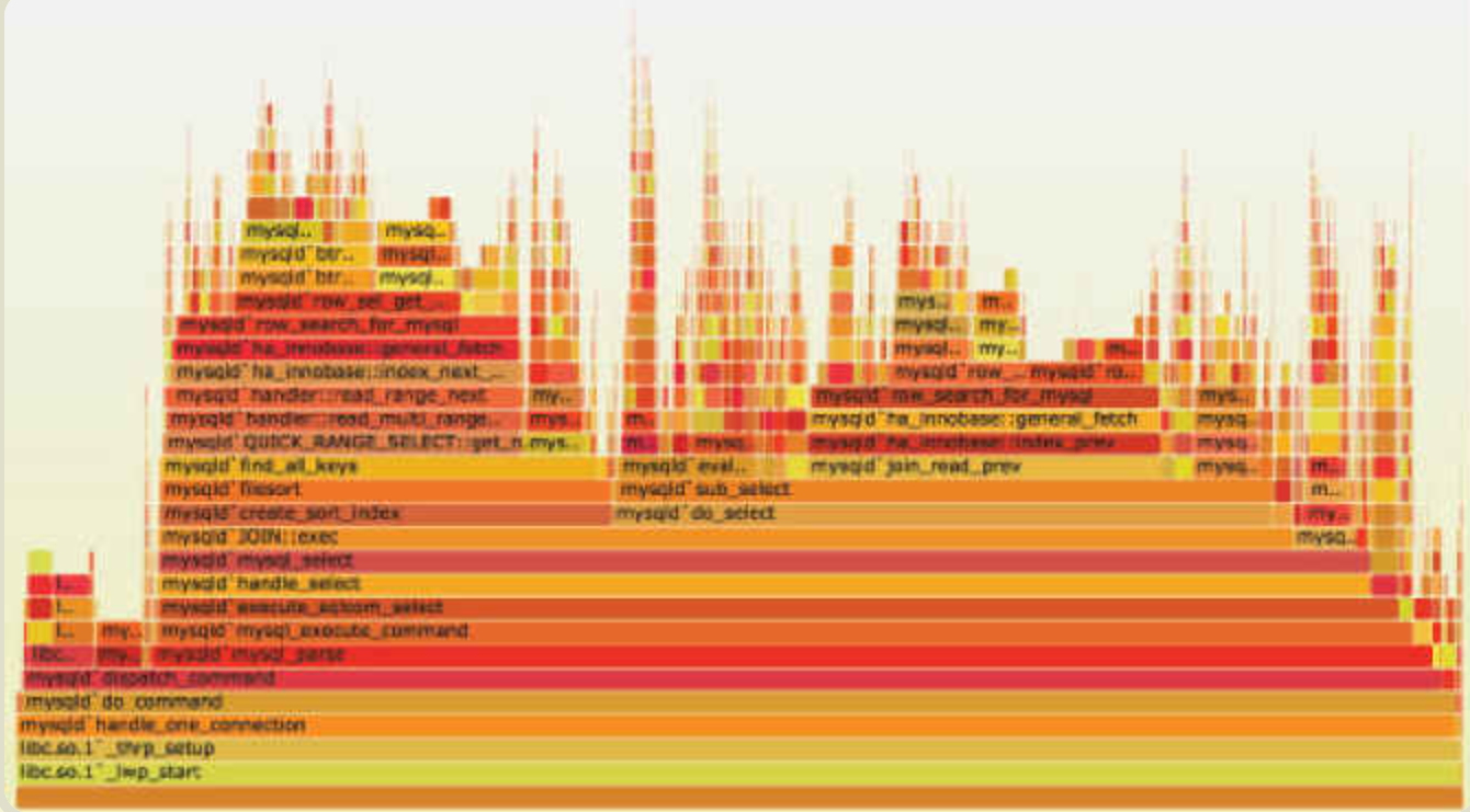 火焰图就是看顶层的哪个函数占据的宽度最大。只要有"平顶"(plateaus),就表示该函数可能存在性能问题。