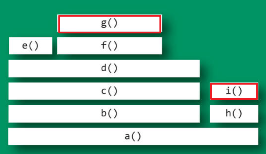 上面图片中,最顶层的函数g()占用 CPU 时间最多。d()的宽度最大,但是它直接耗用 CPU 的部分很少。b()和c()没有直接消耗 CPU。因此,如果要调查性能问题,首先应该调查g(),其次是i()。