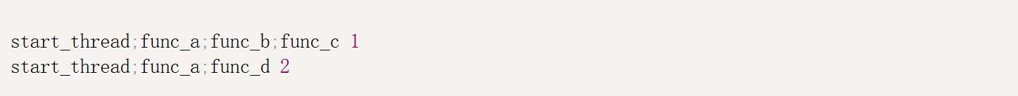 经过合并处理后,得到了下面的结果,即存在两个调用栈,第一个调用栈抽中1次,第二个抽中2次。