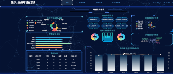随着医疗信息化进程加速,如何有效整合多源医疗数据并实现智能化分析成为行业痛点。本研究构建基于大数据技术的医疗机构分析平台,采用前后端一体化架构模式,运用Vue.js框架搭建可视化前端界面,结合Flask框架实现后端服务功能。通过定向抓取互联网医疗平台的病症数据资源,建立基于随机森林算法的智能分类模型,同步集成生成式大语言模型构建交互式问答系统。平台具备医疗数据采集、清洗、存储、分析的全流程处理能力,在疾病类型智能识别方面表现出较高准确性,其内置的智能问答模块有效提升医患信息交互效率。实践表明该平台在辅助诊断决策、优化医疗资源配置方面具有应用潜力,为区域医疗机构数字化转型提供可行技术方案。