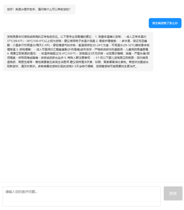 (3)能医疗咨询功能:大模型对话系统,可解答用药禁忌查询、检查报告解读等咨询。