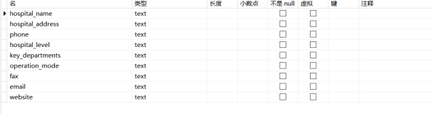 - 医院信息表主要用于存储医院的相关信息,hospitals信息表如表4-2所示。