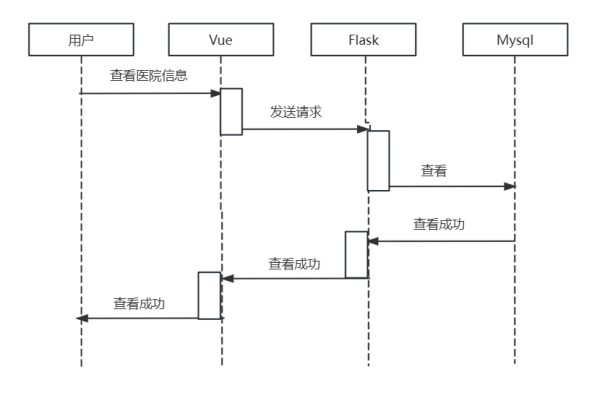 - 查看相关医院信息模块,主要对相应的医院信息进行查看。详细时序图如图4-5所示。
