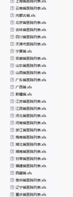 爬虫程序启动时预置全国省级行政区划数据,初始化请求头信息并配置动态用户代理池。通过遍历省份列表逐个构造目标URL,采用随机轮换的浏览器指纹和反爬策略发起网络请求。获取医疗门户网站页面后,使用HTML解析器精准定位医院信息列表区块,提取包含名称、地址、等级等九大字段的结构化数据。针对每个医疗机构的详情条目,执行多层数据清洗:去除冗余换行符、分割键值对、映射字段标签,自动跳过格式异常的条目。处理后的数据按省份建立独立Excel文件存储,动态创建分级目录确保文件路径合规。表格采用标准字段架构,首行固化表头信息,后续行按解析顺序填充医疗机构属性。爬取过程中实时捕获网络超时、元素定位异常等错误,在控制台输出失败记录但不中断流程。最终所有省份数据均以分省独立文件形式存储于预设目录,形成树状结构数据仓库。整个流程贯穿反爬机制与数据校验,确保在合规前提下高效获取结构化医疗信息,输出格式统一且支持后续分析扩展。具体爬取数据如图5-7所示: