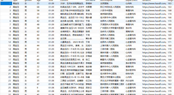 图5-7 爬取到医院数据