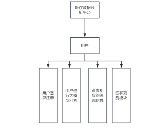 本项目主要包含的功能有,用户模块,相应的医疗图表信息模块,大模型问答模块,机器学习预测模块,这些功能是本项目的基础功能。详情请参见下图4-2所示。