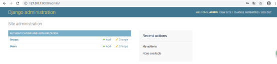 第三步:访问admin后台:http://127.0.0.1:8000/admin/ 通过前面创建的超级管理员账号登录