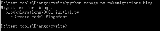 第二步:执行数据库同步,把相关表生成出来,命令如下