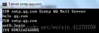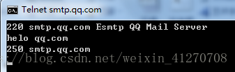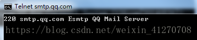 打开cmd,输入:telnet smtp.qq.com 25 ,连接邮件服务器,成功后如下图