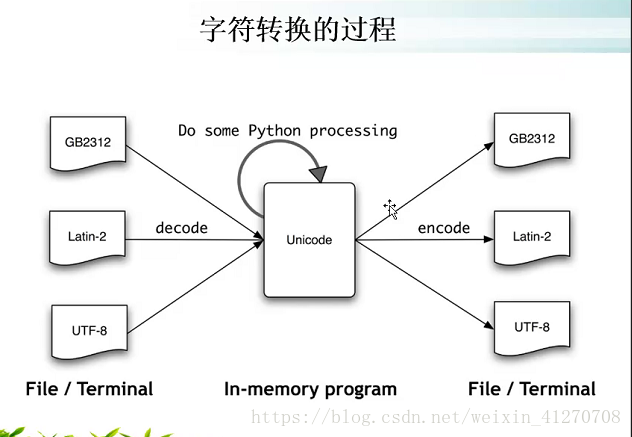 Unicode:在内存中使用,只能用encode