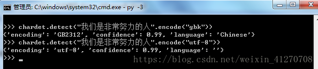 chardet.detect("我们是非常努力的人".encode("utf-8"))