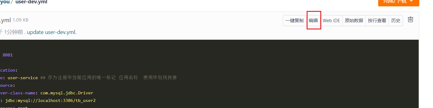 (4)修改码云上的配置文件 ,将数据库改成另一个数据库tb_user2