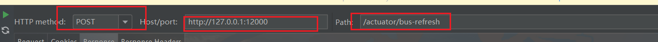 (5)测试 Url: http://127.0.0.1:12000/actuator/bus-refresh Method: post