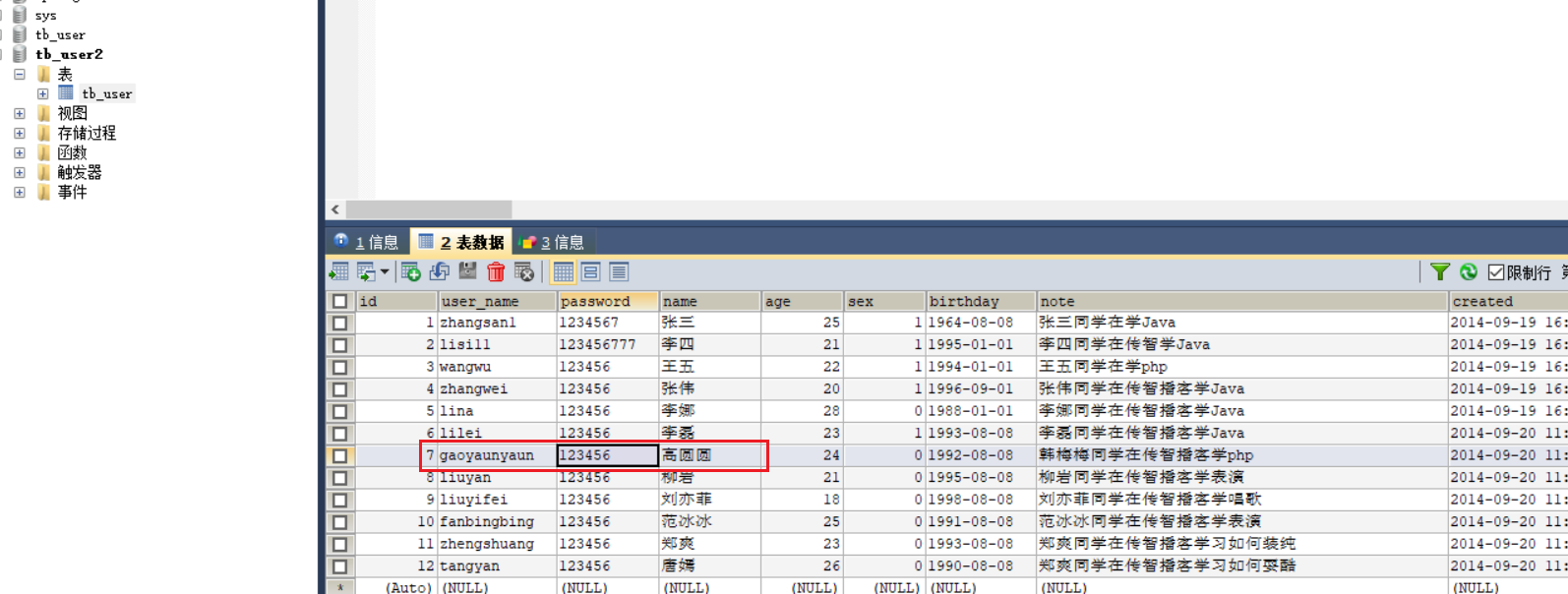 (6)再次观察输出的数据是否是读取了tb_user中的数据。