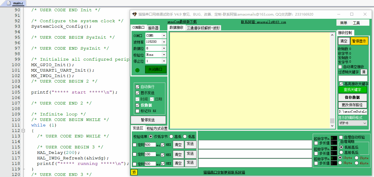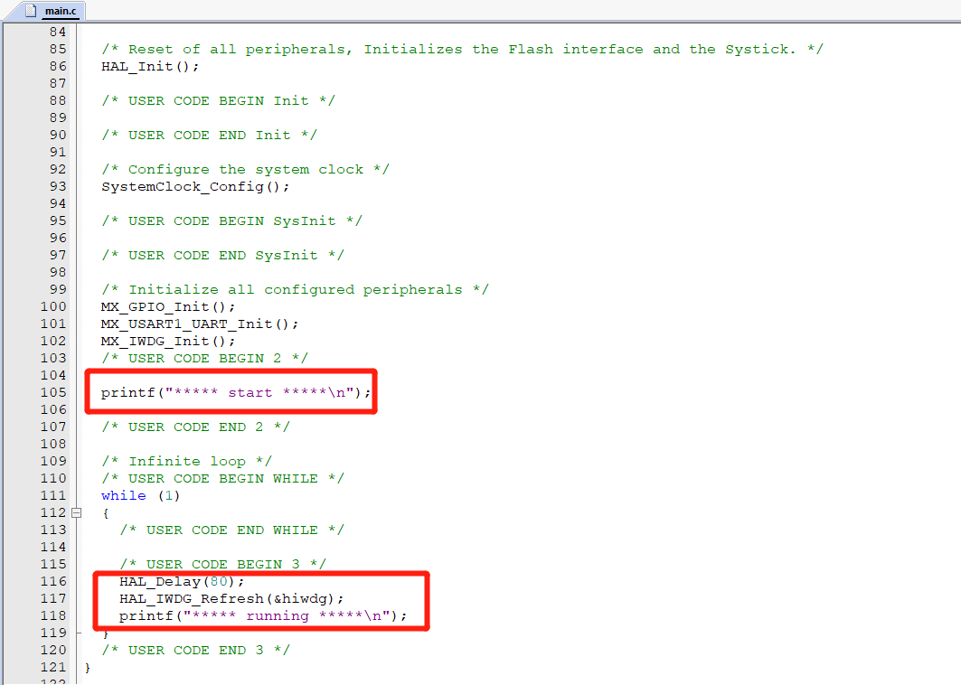 重定向printf的过程请参考 STM32CubeMx开发之路—3发送USART数据和printf重定向
