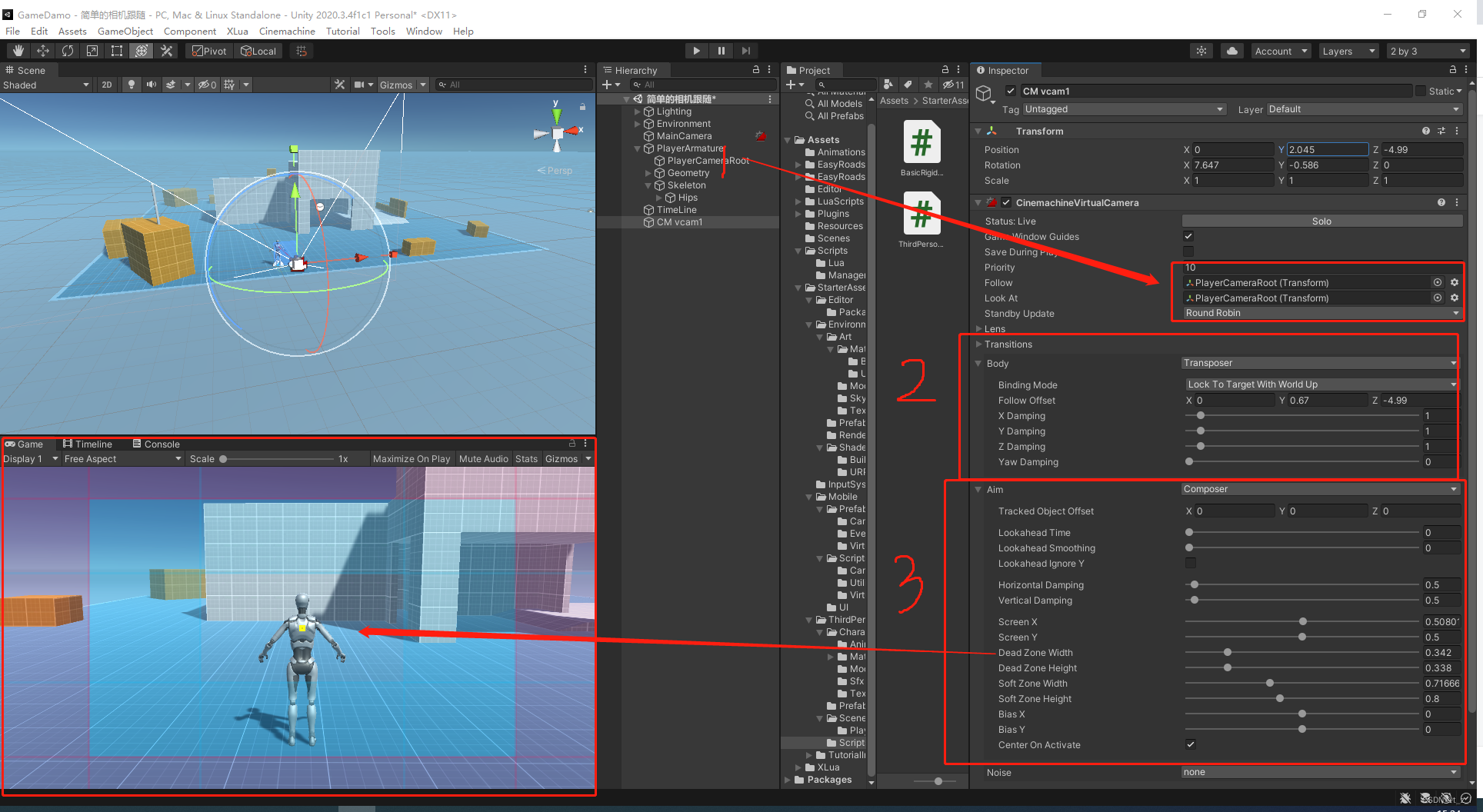 2、创建Cinemachine Virtual Camera ,设置相关参数