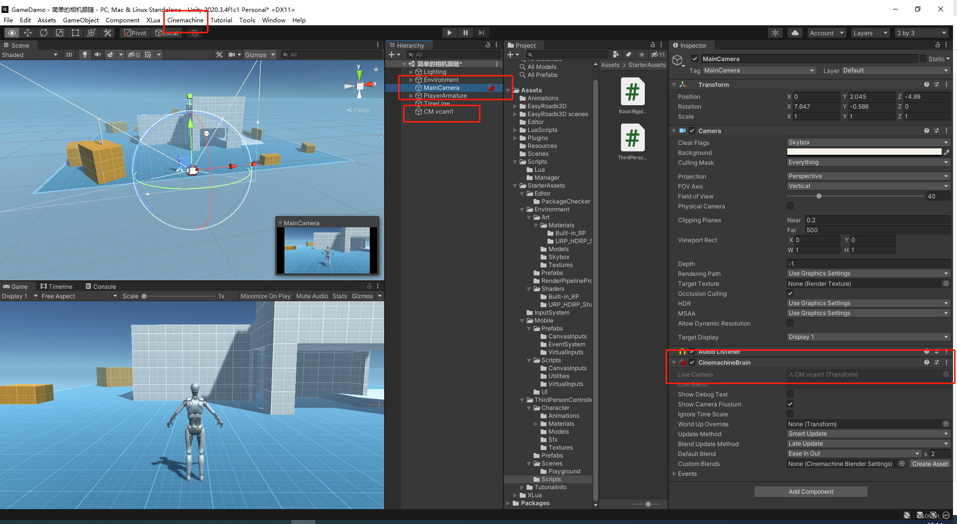 虚拟相机创建完成后主摄像机将被锁定无法移动,只能通过控制虚拟摄像机控制视野。