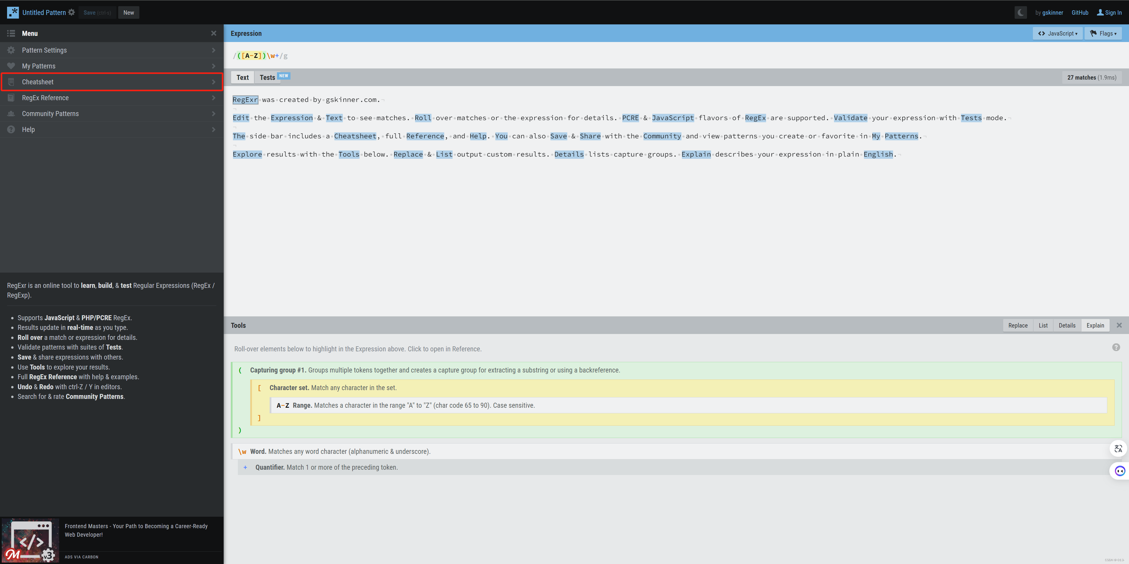 1、打开 学习、构建和测试正则表达式网址:RegExr: Learn, Build, & Test RegEx