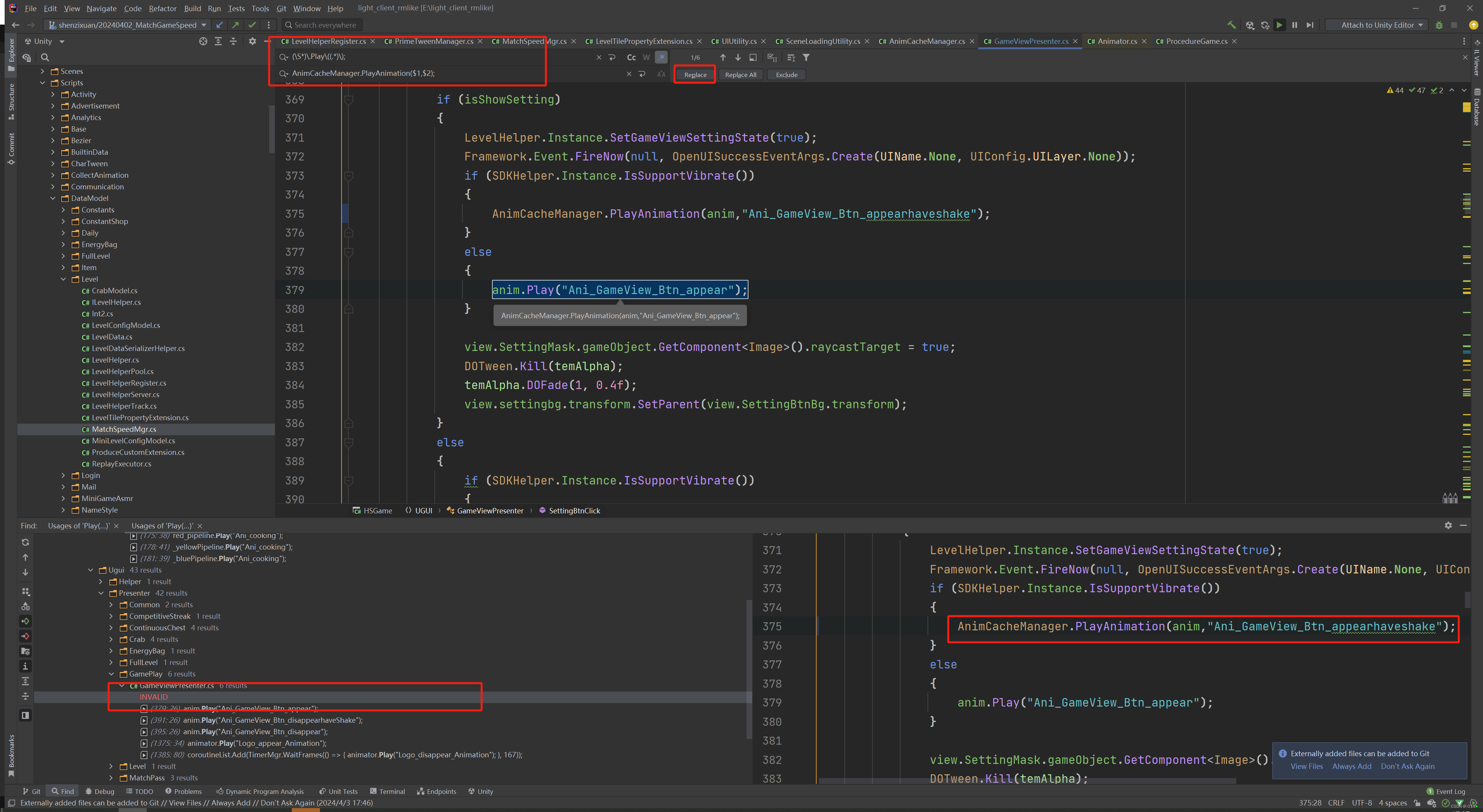 我们希望在代码中调用的地方全部改为自身定义的 PlayAnimation