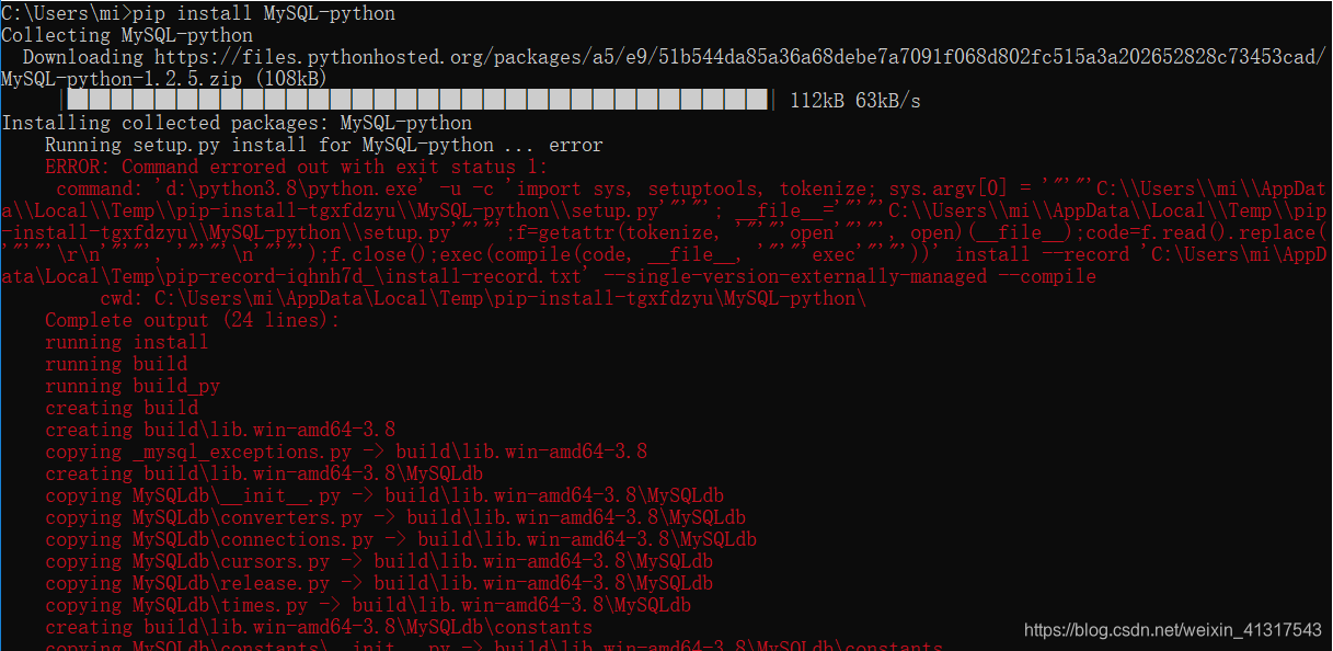 mysql-python不支持python3.x,而与之功能相同的pymysql支持python3,所以安装pymysql模块即可。
