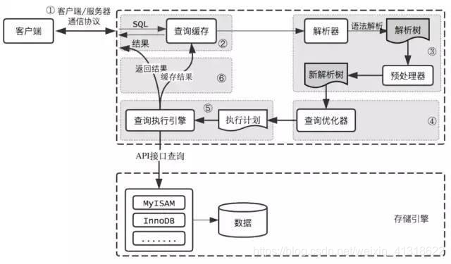 mysql的查询过程首先就是先判断是否击中查询缓存(只有开启了查询缓存才需要判断),是的话直接返回,否则进入解析器进行解析,然后进入到查询优化器进行优化,最后就执行该sql语句。