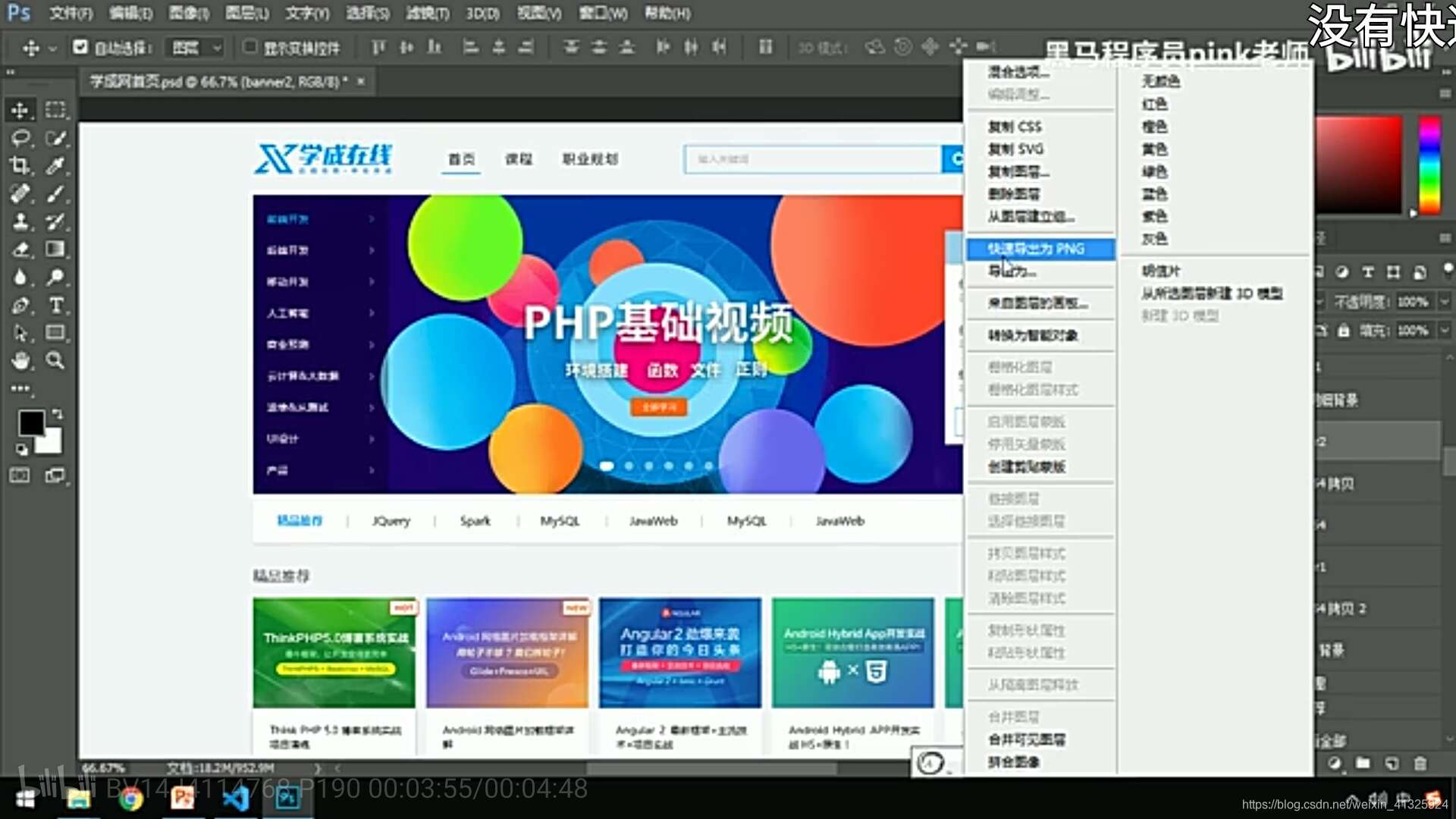 本文详细介绍Photoshop切图技巧,包括图层切图、切片切图及插件切图,同时分享学成在线项目的实战经验,涵盖CSS属性书写顺序、页面布局与样式设置,适合前端开发人员学习。