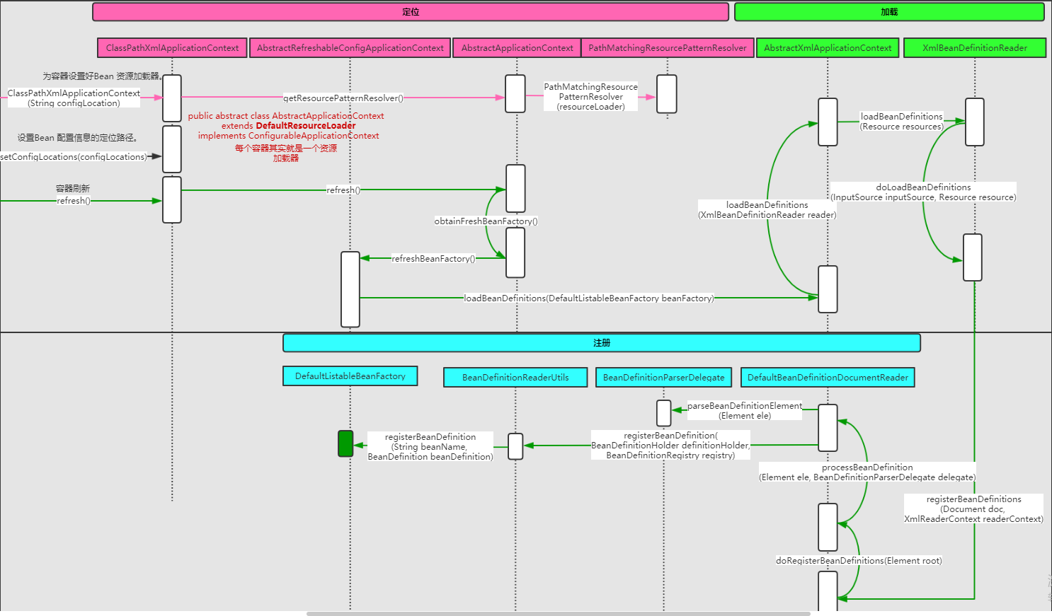 (1):通过继承AbstractBeanDefinitionReader中的方法,来使用ResourceLoader将资源文件路劲转换为对应的Resource文件。