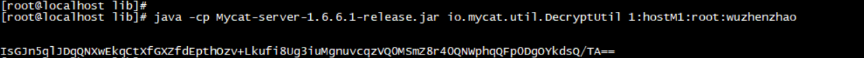 java -cp Mycat-server-1.6.6.1-release.jar io.mycat.util.DecryptUtil 1:host:user:password