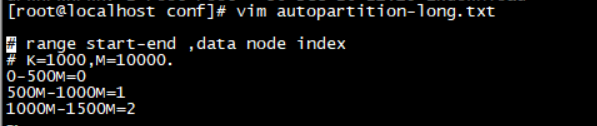 defaultNode 超过范围后的默认节点。 所有的节点配置都是从 0 开始,及 0 代表节点 1,此配置非常简单,即预先制定可能的 id 范围到某个分片 0-500M=0 500M-1000M=1 1000M-1500M=2 或 0-10000000=0 10000001-20000000=1。