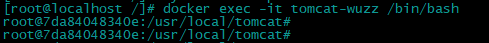 5.进入tomcat容器 docker exec -it tomcat-wuzz /bin/bash 。