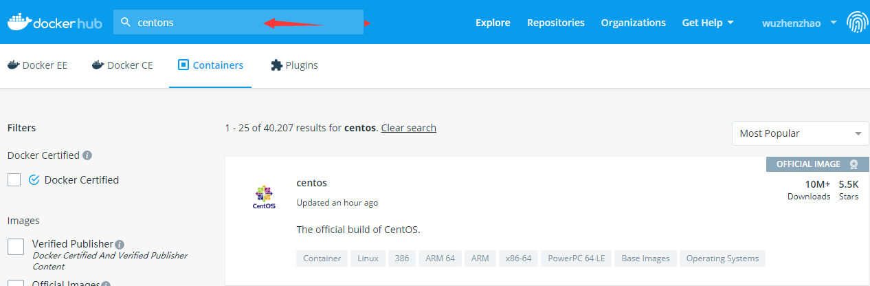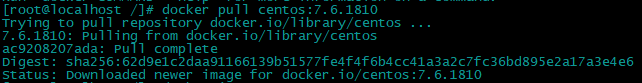 默认是最新的版本,可以在后面指定版本":" 。比如拉去centos 7.6.1810版本: